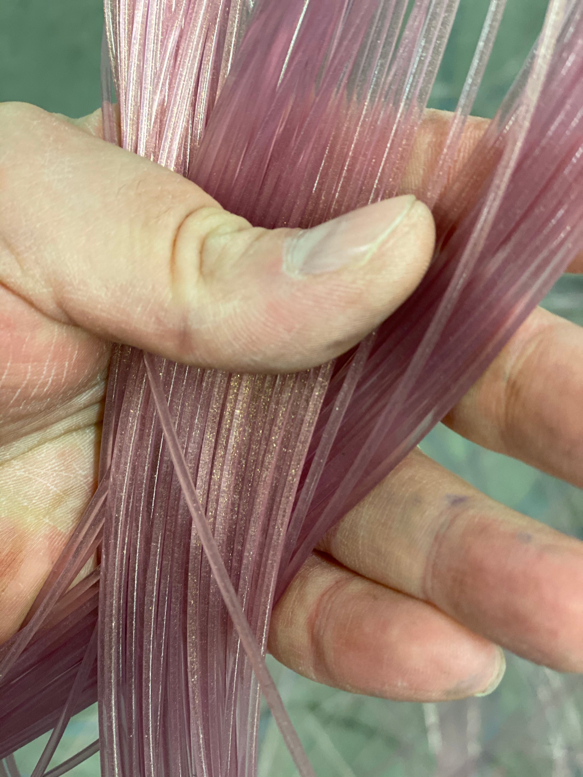 Beautiful translucent clarity with rose gold color base & a special interference gold flake that shimmers multiple shades of gold under different viewing angles.